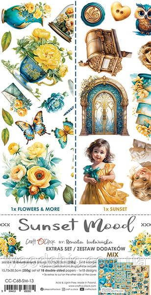 Набір з 18 двосторонніх аркушів високоякісного паперу для скрапбукінгу з додатковими елементами для вирізання (1x18 малюнків) + 3x аркуші з ДОДАТКОВИМИ ДЛЯ ВИРІЗАННЯ на іншій стороні обкладинки. Кожна сторінка має розмір 15,75х30,5 см . Вага паперу 250 г/м2 .